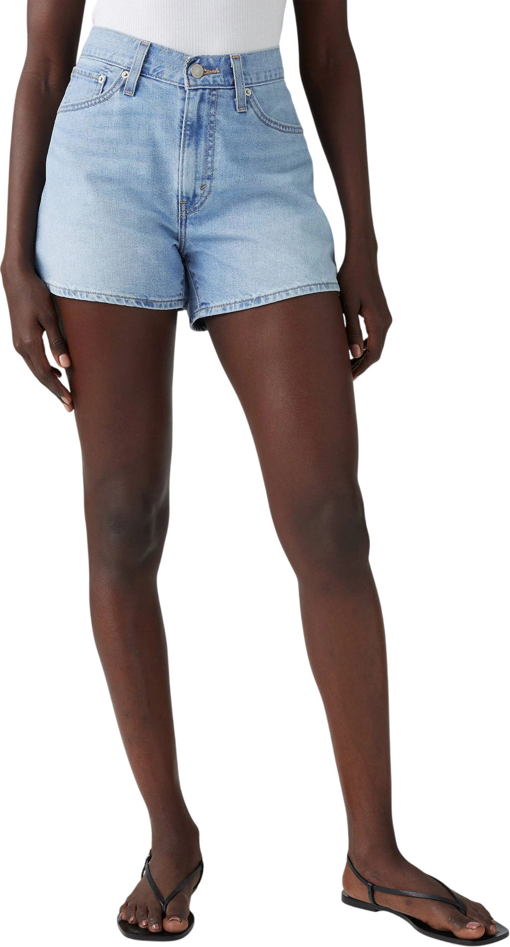 Высокая посадка 10 3/4" делает эти шорты идеальными для создания утонченного, стройного силуэта, а А-образный вырез визуально удлиняет ноги. Внутренний шов длиной 4" добавляет комфорта и свободы движений. Шорты выполнены из 100% хлопка, что гарантирует их прочность и легкость. Деним не растягивается, сохраняя форму даже после многочисленных стирок.