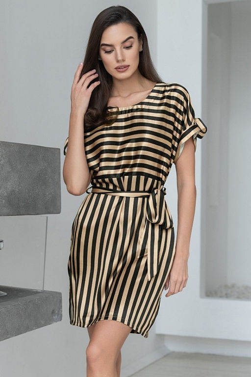 Короткая туника Mia-Mella с короткими рукавами выполнена из принтованного искусственного шёлка. В боковых швах карманы, по талии можно завязать пояс. По бокам расположены разрезы для свободы движения.­