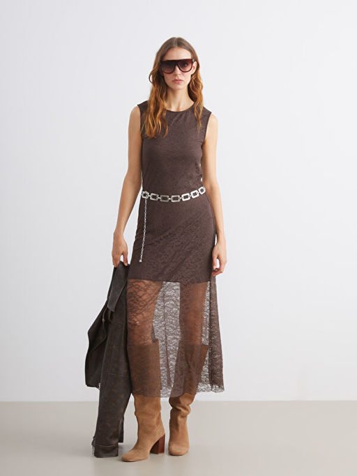 Bisiklet Yaka Dantelli Elbise