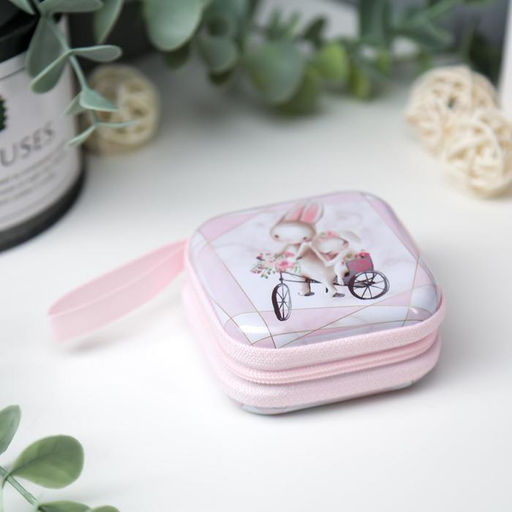 • Цена за 2 шт. Шкатулка металлическая на молнии с петелькой «Зайчата на велосипеде», 6.5×6.5×3 см