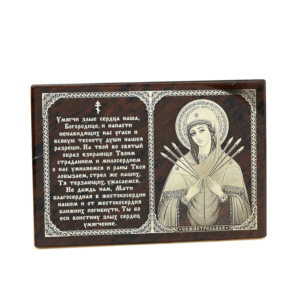 • Икона из обсидиана 130*90мм "Семистрельная" с молитвой. Радуга камня