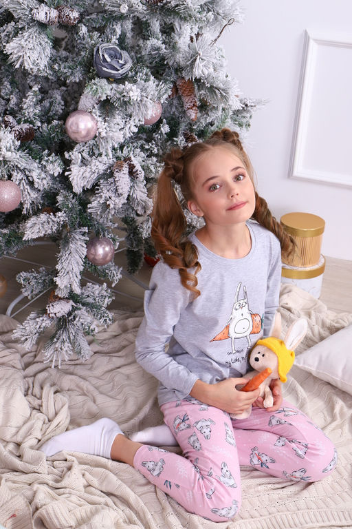 • Пижама для девочки Зайцы-морковки арт. ПД-15-048