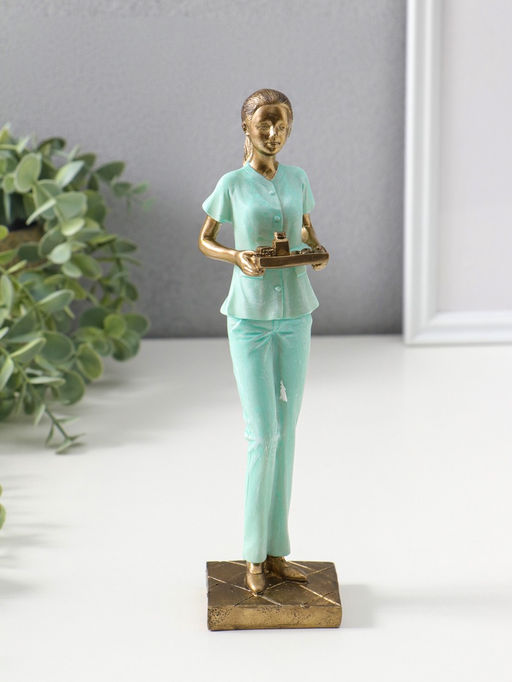 • Сувенир полистоун "Медсестра в зелёном костюме с подносом с лекарствами" 23,5 см