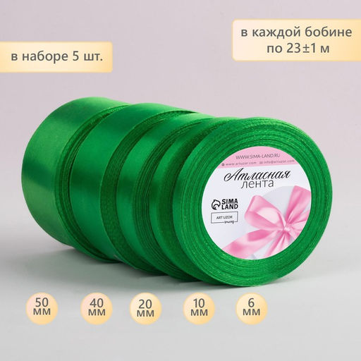 • Атласная лента, набор 5 шт., 6/10/20/40/50 мм, 23±1 м, зелёная №19