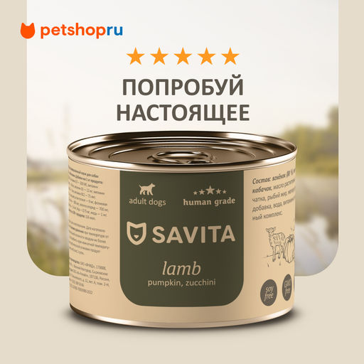 Беззерновые консервы класса holistic Savita - это сбалансированные натуральные рационы для собак с высоким содержанием мяса, обогащенные витаминно-минеральным комплексом