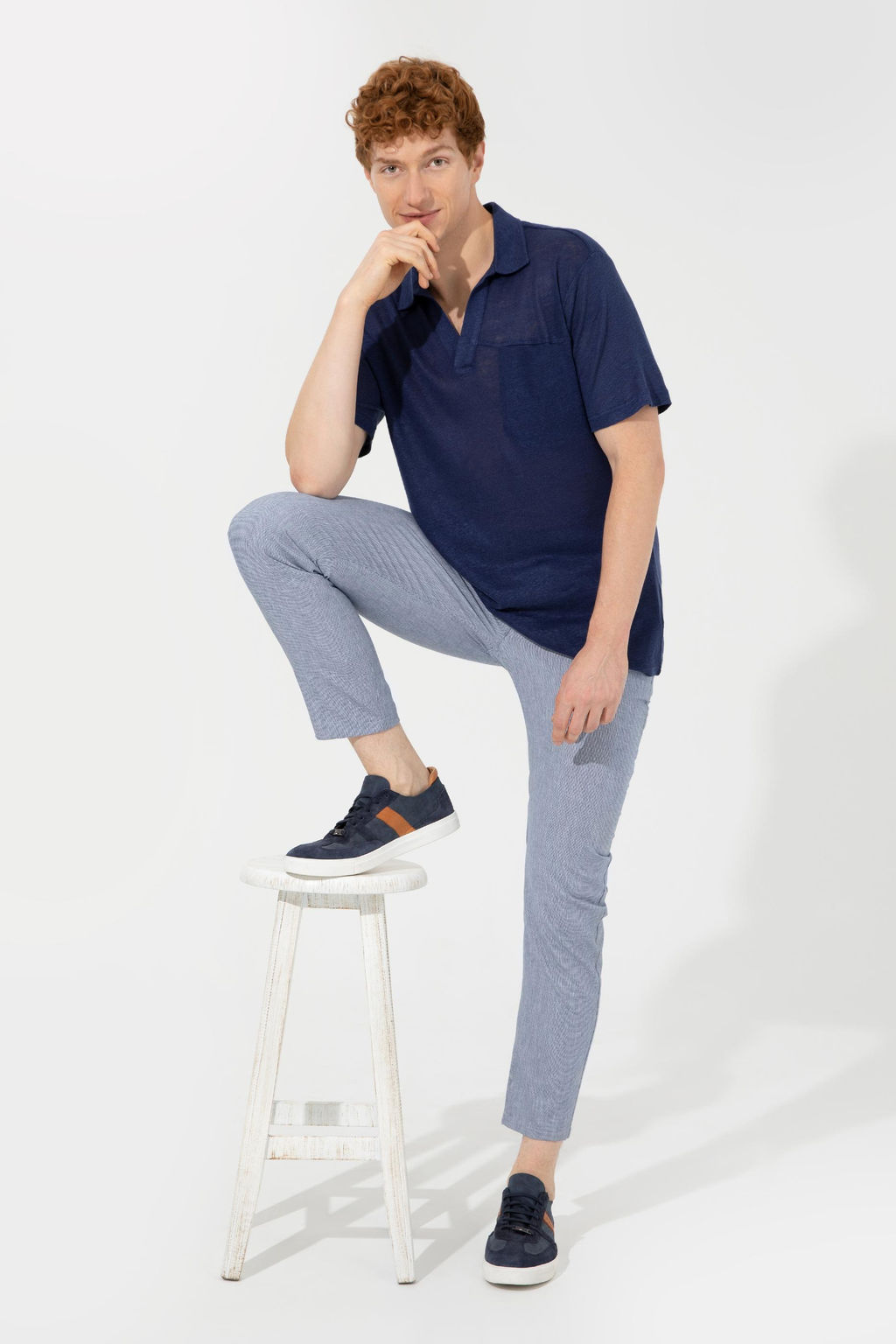 Erkek Carrot Fit Mavi Kanvas Pantolon