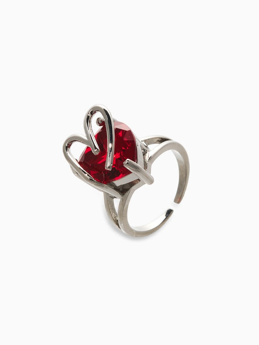 • Кольцо «Сердце» с камнем, цвет красный в серебре, безразмерное