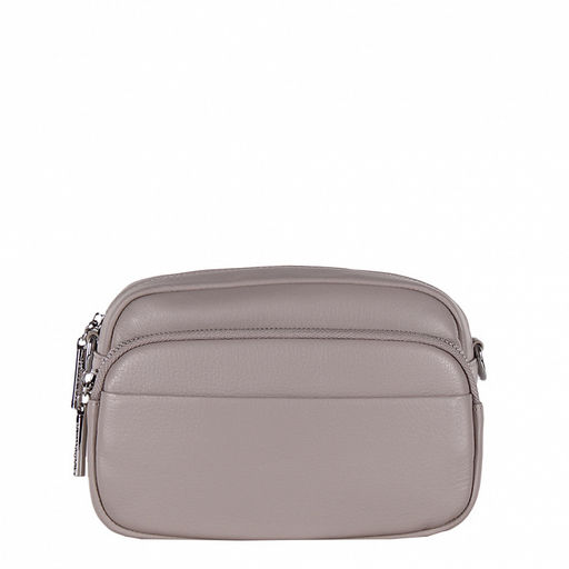 Модель кросс-боди, выполнена из натуральной кожи. Дополнена  серебристой фурнитурой. Данная модель закрывается на молнию. Каркас полужесткий. Носится на плече. В комплекте имеется съемный ремень с регулировкой длины.