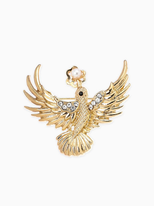 • Брошь "Калибри с цветком", цвет белый в золоте