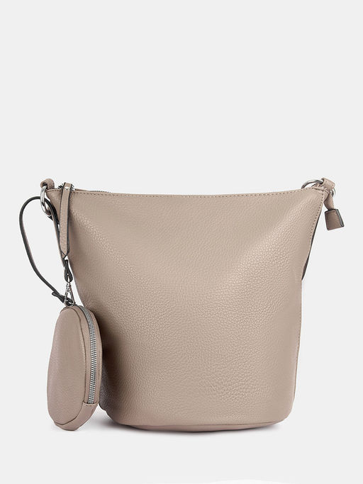 Вместительная сумка из искусственной кожи светлого бежевого оттенка практичный и стильный аксессуар на каждый день. Модель с просторным основным отделением на молнии и прорезным кармашком с внутренней стороны. В комплекте - съемный круглый кошелек на молнии, подходящий для хранения ключей или важных мелочей.