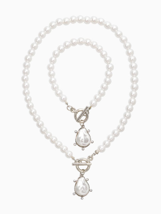• Набор 2 предмета: колье, браслет «Жемчуг. Подвеской Барочная жемчужина», 18 и 42 см, №8, белый в серебре