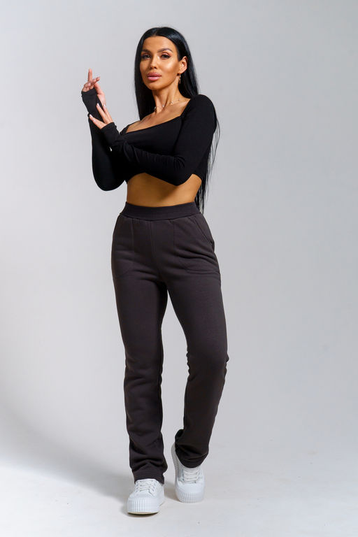 Женские брюки прямого силуэта из футерного полотна с начесом — теплые и удобные для повседневной носки. Модель оснащена практичными карманами и эластичным поясом из кашкорсе, который обеспечивает комфорт и идеальную посадку. Отличный выбор для домашних дел, прогулок и активного отдыха в прохладную погоду. Идеальны для оптовых закупок — высокое качество тканей и пошива по выгодной цене!