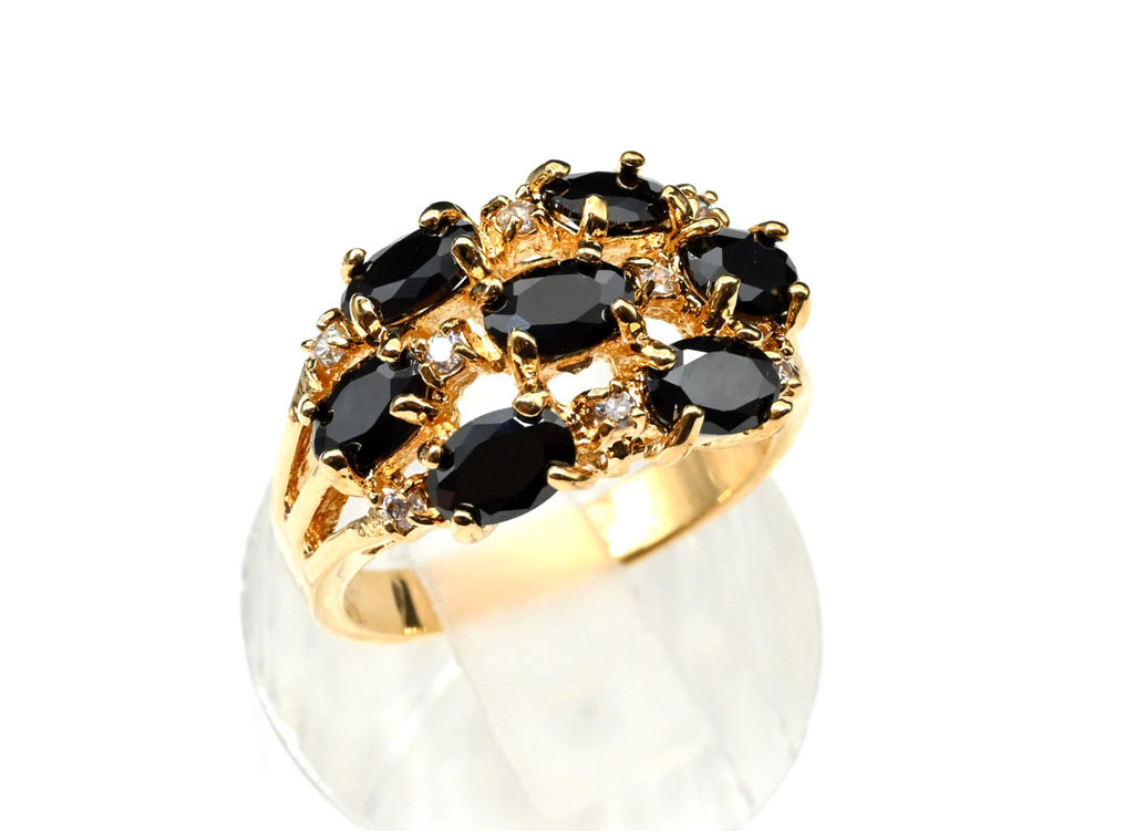 • Кольцо позолоченное "Соты" с чёрным цирконом и белым, размер17