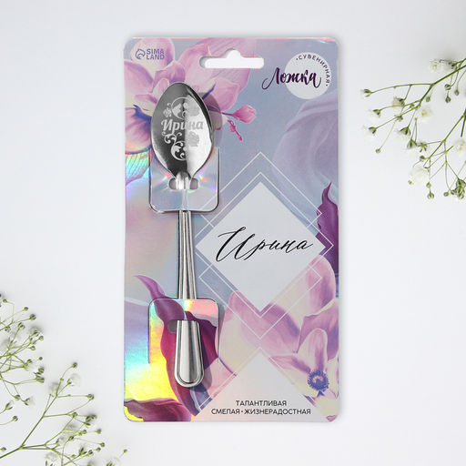 Ложка с лазерной гравировкой и изящной рукояткой преподносится на красочной открытке. На оборотной стороне изделия специально отведено место для подписи: кому и от кого был вручён подарок.