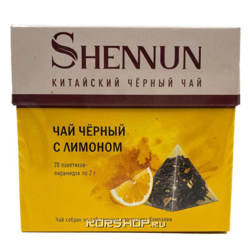• Чай чёрный с лимоном среднелистовой в пирамидках Shennun, Китай, 40 г (20шт)
