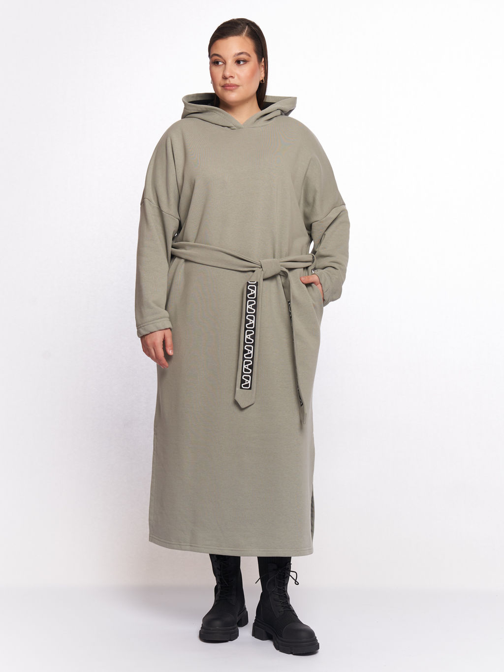 Описание товара Платье с капюшоном длинное больших размеров зеленое