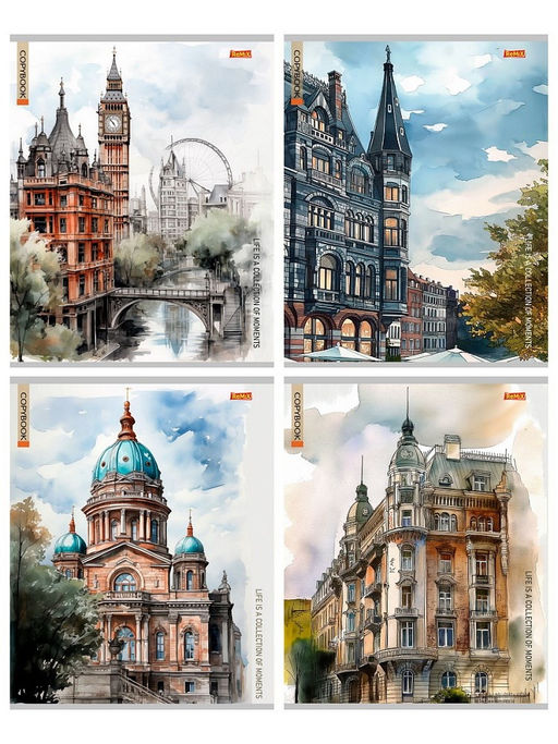 Цена за 2 шт. Тетрадь 96л. Remix ЭКОНОМ "Города в акварели" линия (96-9533) типогр. бумага