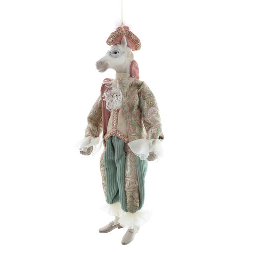 Набивная игрушка с подвесом "Лошадь" в придворном костюме изящный и необычный элемент новогоднего или интерьерного декора. Мягкая фигурка лошади выполнена с особым вниманием к деталям: роскошный костюм из блестящей ткани придаёт образу торжественность и сказочность. Игрушка создаёт атмосферу уюта и волшебства, отлично смотрится под ёлкой, на полке или в композиции с другими праздничными аксессуарами. Благодаря удобной петельке, изделие можно подвесить , например, на ёлку.Подойдёт как украшение, сувенир или оригинальный подарок.Стоит отметить, что голова игрушки выполнена из пластмассы, что делает изделие более легким, чем другие полимерные материалы.