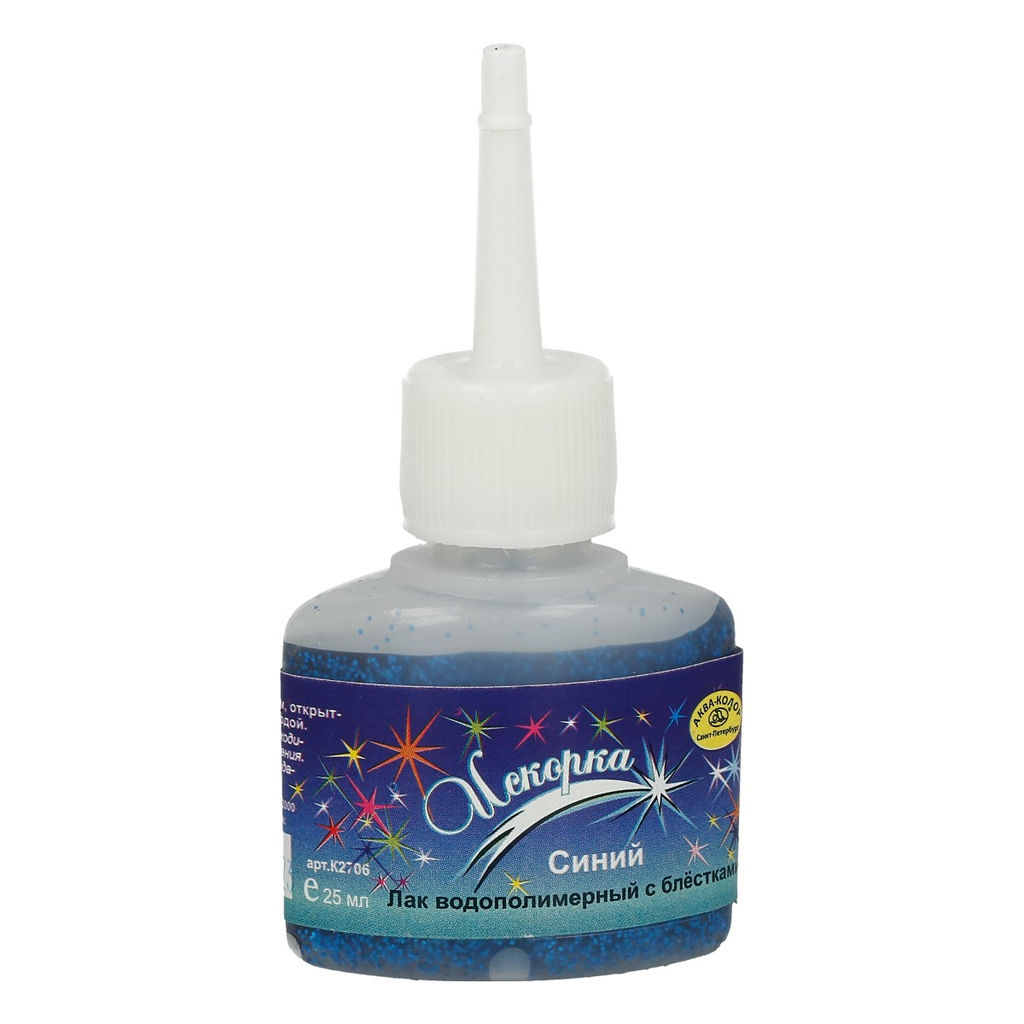 Аква-колор Лак водополимерный с блёстками Искорка 25 мл синий К2706