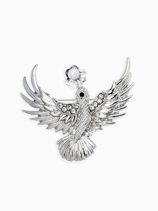 • Брошь "Калибри с цветком", цвет белый в серебре