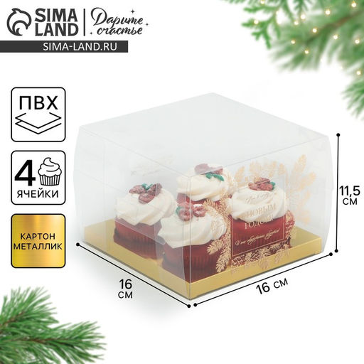 Цена за 5 шт. Коробка для капкейка «С Новым годом», 16×16×11.5 см