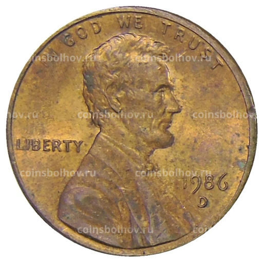 Монета 1 цент 1986 года D США