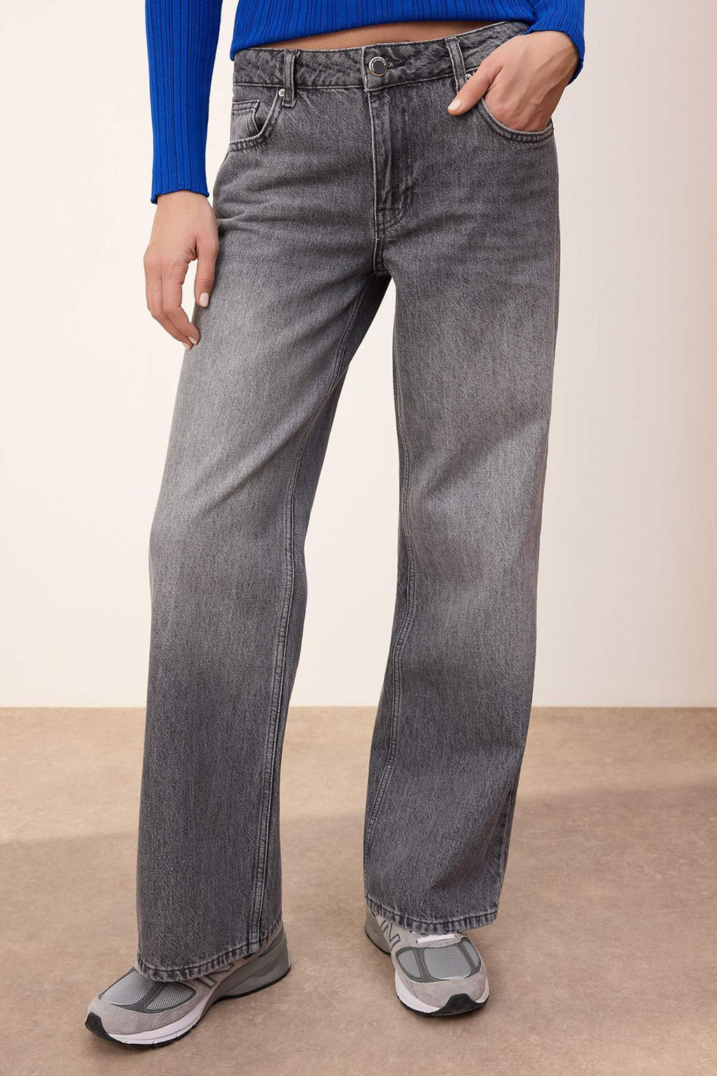 • Trendyolmilla Wardrope Essentials Gri Dusuk Bel 100% Pamuk Wide Leg Genis Paca Jeans TWOSS26JE00131