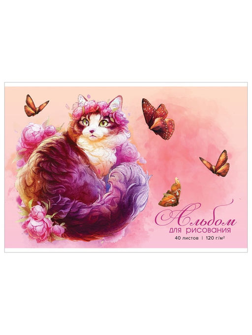 • Цена за 2 шт. Альбом для рисования А4, 40 листов на клею «Кошка», глиттер, плотность листов 120 г/м²