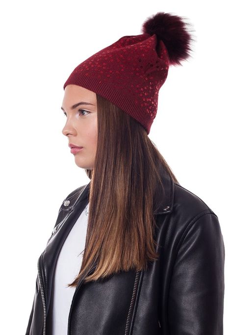 Яркая красная шапочка, украшенная пайетками и большим помпоном. Позволяет создать новый образ, вплетя нотку непринужденности и игривости. Пушистый помпон из натурального меха, как ультрамодный тренд сезона только добавляет в получившийся образ шарма. Шапка женская с помпоном и пайетками настоящий хит молодежных линеек головных уборов.