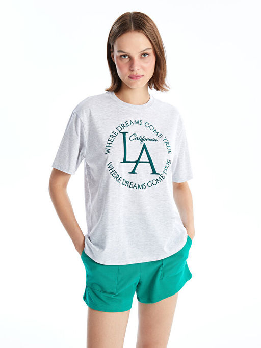 • Bisiklet Yaka Nak??l? K?sa Kollu Oversize Kad?n Ti??rt