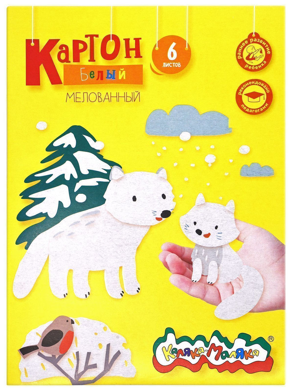 Картон белый Каляка-Маляка 6 листов, мелованный А4 209х296 мм 200 г/м2