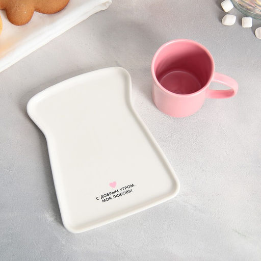 Чайная пара керамическая «С добрым утром»: кружка 200 мл, блюдце 17.8×13.3 см
