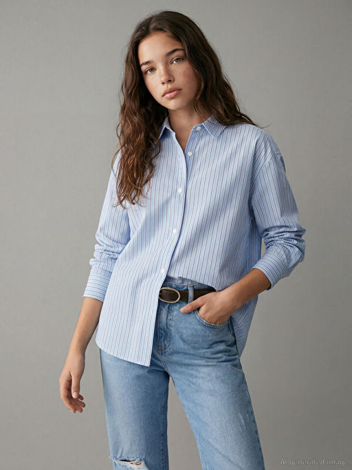 • K?z ?ocuk ?izgili Poplin G?mlek