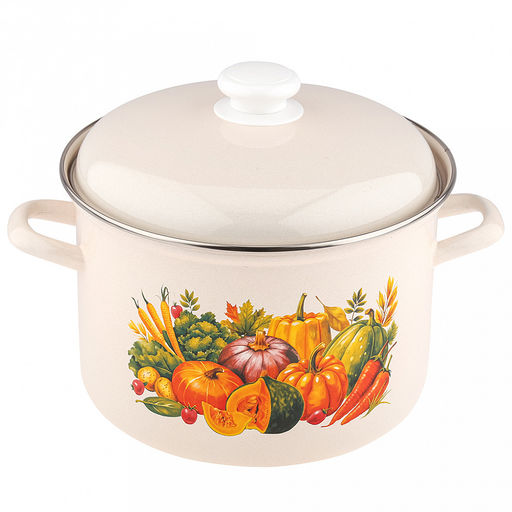 • "Осенний карнавал" Кастрюля эмалированная 6л, форма цилиндрическая, металлическая крышка (Россия)