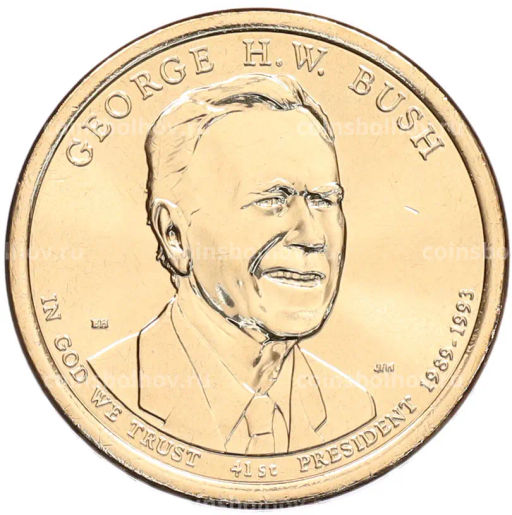 Монета 1 доллар 2020 года (D) США 41-й президент США Джордж Герберт Уокер Буш
