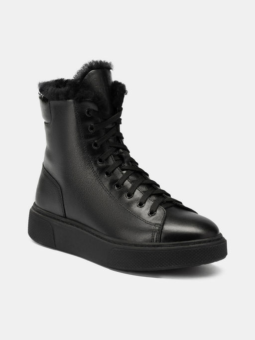 ЦВЕТ: Черный/Черный/Высокие утепленные кеды AURELIA черного цвета - отличная модель на зиму для тех, кто выбирает комфорт и современный стиль. Кеды оснащены утепленным подкладом из натурального меха, девятирядной шнуровкой и дополнительно молнией для удобства. Плоская подошва, устойчивая к скольжению, обеспечит хорошее сцепление со снежной поверхностью, а натуральная кожа высокого качества не даст ногам промокнуть. Кеды хорошо смотрятся с любыми джинсами и брюками.