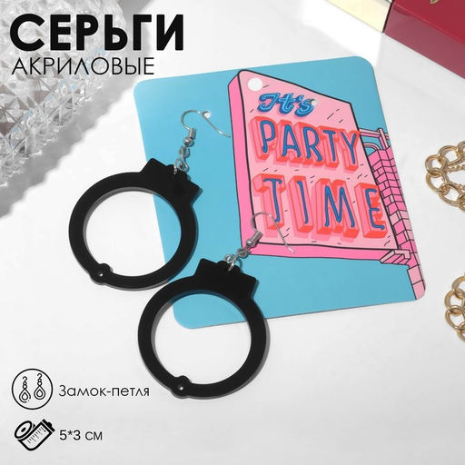 Серьги акриловые «Наручники», чёрные в серебре