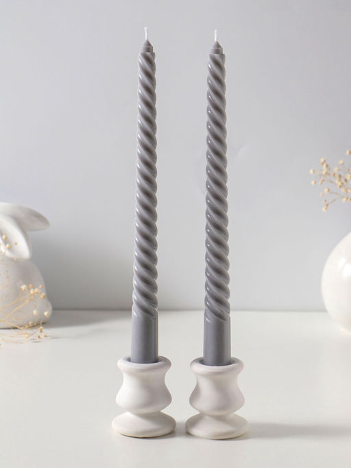 Цена за 2 шт. Свеча витая 25 см (набор 2 шт) 57 гр, 5 ч, цв. серый