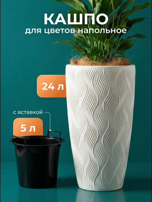 Напольное кашпо предназначено для уличных и домашних растений. Современная форма, приятное цветовое решение и лаконичный дизайн - это кашпо Флэйм. Изделие представлено в трех литражах и двух цветах. Специальная внутренняя вставка облегчит процесс высадки растения и уход за ним. Внутренняя вставка идет с ручками для удобства. Кашпо отличается особой прочностью и морозостойкостью, его легко мыть.