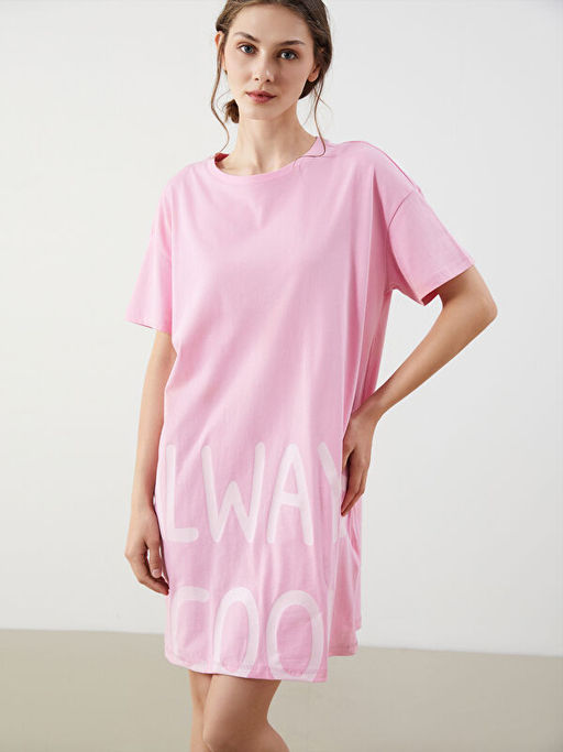 Bisiklet Yaka Bask?l? Kad?n Gecelik