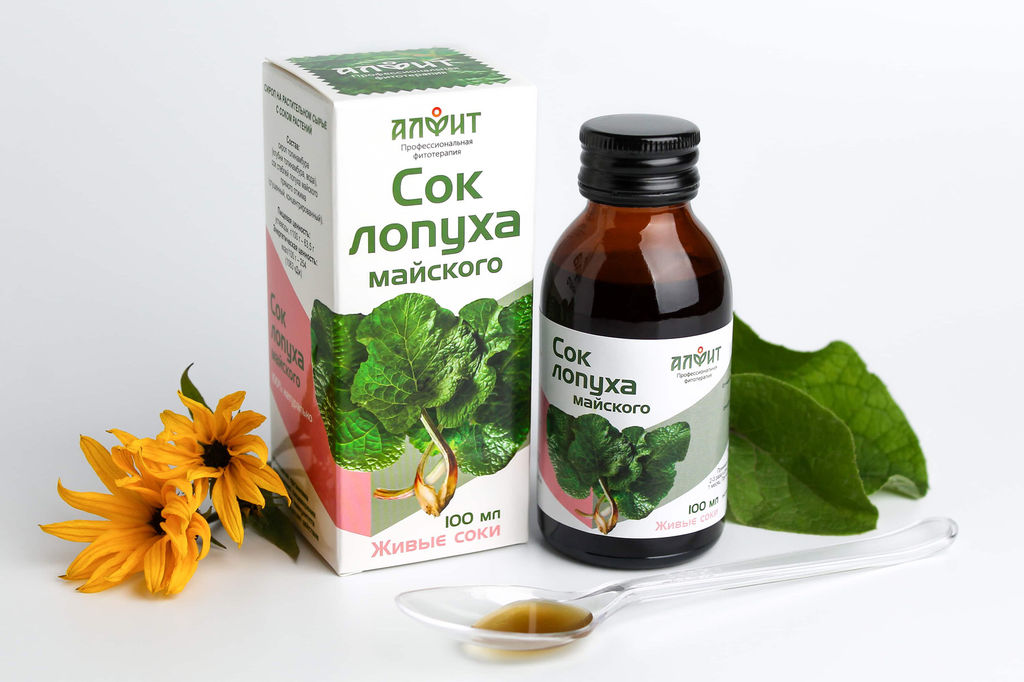 В Состав: е сока лопуха майского вместо сахара и мёда содержится растительный сироп топинамбура, который обладает широким спектром полезных свойств: