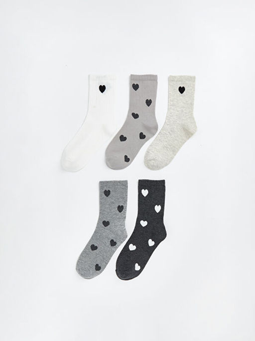 Kalp Desenli Kad?n Soket ?orap 5li