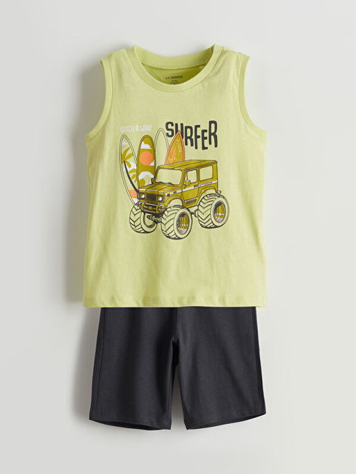Bisiklet Yaka Bask?l? Erkek ?ocuk Atlet ve ?ort 2li