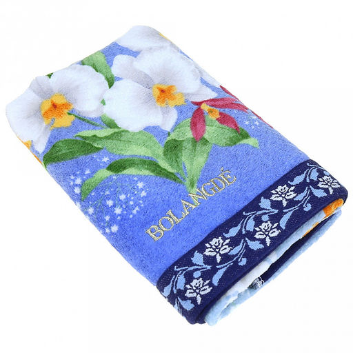 • "Япония-2045" Полотенце махровое 34х78см, плотность 300гр/м2, 100% хлопок, "Ирисы", синий, Bolangde (Китай)