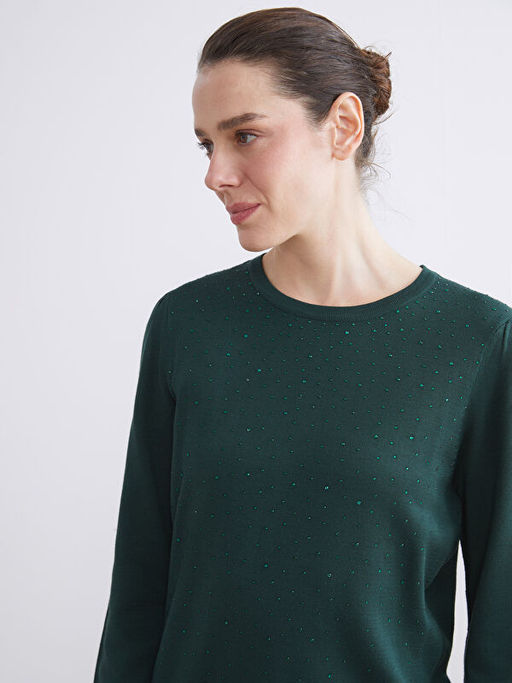 Bisiklet Yaka Ta?l? Kad?n Triko Kazak