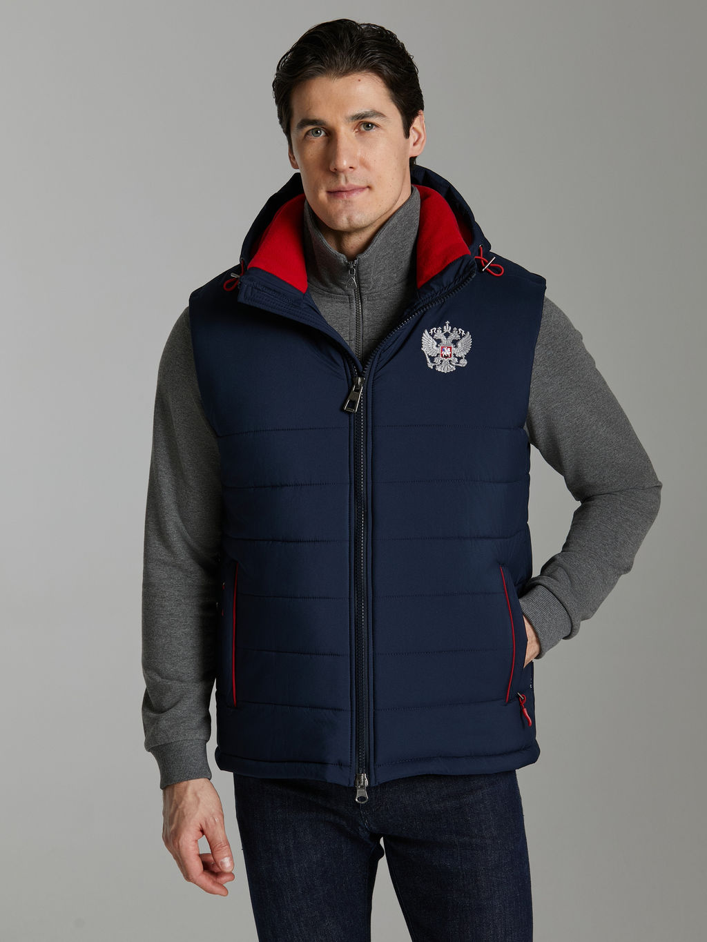 Тип материала: ветрозащита ? Плащевка с ветрозащитными и влагоотталкивающими свойствами современные ткани со специальным покрытием, обладающим водоупорным свойствами. Также покрытие препятствует проникновению ветра, что снижает потери тепла из-под одежды. Высокотехнологичные покрытия обладают мембранным эффектом наличием микропористой структуры, благодаря которой могут пропускать водяной пар, выводя наружу испарении тела (пот). Поэтому плащевка с мембранным покрытием замечательно отталкивает жидкость (грязь) с поверхности ткани, не впитывая ее, и выводит излишки влаги и тепла, создавая комфортные условия при различных погодных условиях и режимах активности, кроме этого служит надежной защитой от проникновения кровососущих насекомых. Изделия не требуют специального ухода, несложные загрязнения смываются водой, стирать изделия лучше с применением мягких моющих средств. Не требуют глажения. Утепленный жилет, артикул 98M-RT-1778/1 темно-синего цвета изготовлен из водоотталкивающей плащевой ткани с мембранным пленочным покрытием. Изделие выполнено в командной стилистике с российской символикой. Жилет на молнии, с воротником-стойкой и съемным капюшоном. Утеплитель куртки высокотехнологичный полиэфирный материал из микроволокна. Дополнительный комфорт и теплоизоляцию создает флисовая подкладка жилета и капюшона. Внутренняя поверхность воротника так же из мягкого флиса. Температурный режим эксплуатации изделия до -20С. Боковые карманы - прорезные с молниями, внутренний нагрудный карман так же на молнии. Лицевая часть капюшона регулируется с помощью эластичного шнура и пластиковых фиксаторов. На груди жилета слева вышивка герба России, на спине вышивка-аппликация РОССИЯ. Жилет предназначен для всех любителей активного отдыха и экипировки спортивных команд.