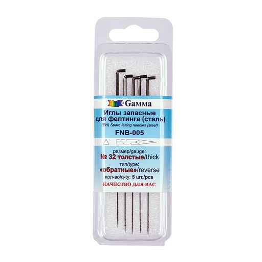 • Gamma FNB-005 Иглы для валяния (фелтинга) запасные в пластиковой упаковке с европодвесом 5 шт №32 грубые (обратные)