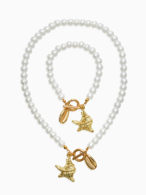 • Набор 2 пред-та: бусы.браслет "Жемчуг", ракушка, цвет белый в золоте L=18/42см №8