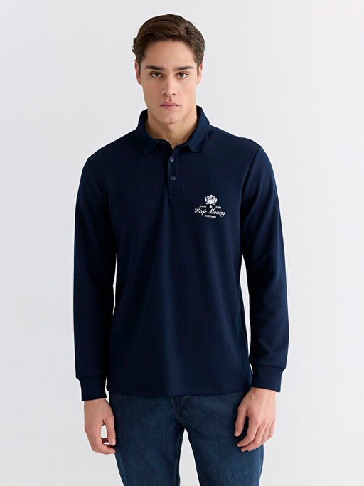 • Polo Yaka Bask?l? Erkek Sweatshirt