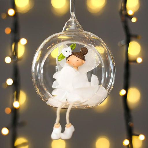 • Цена за 4 шт. Фигурка - подвеска «Фея-бабочка, в юбке лепестке пушок, в шарике», ёлочная игрушка, 9×8×10 см